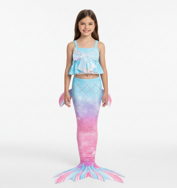 Un joli nœud en organza avec des pompons multicolores en font une queue de sirène vraiment unique.